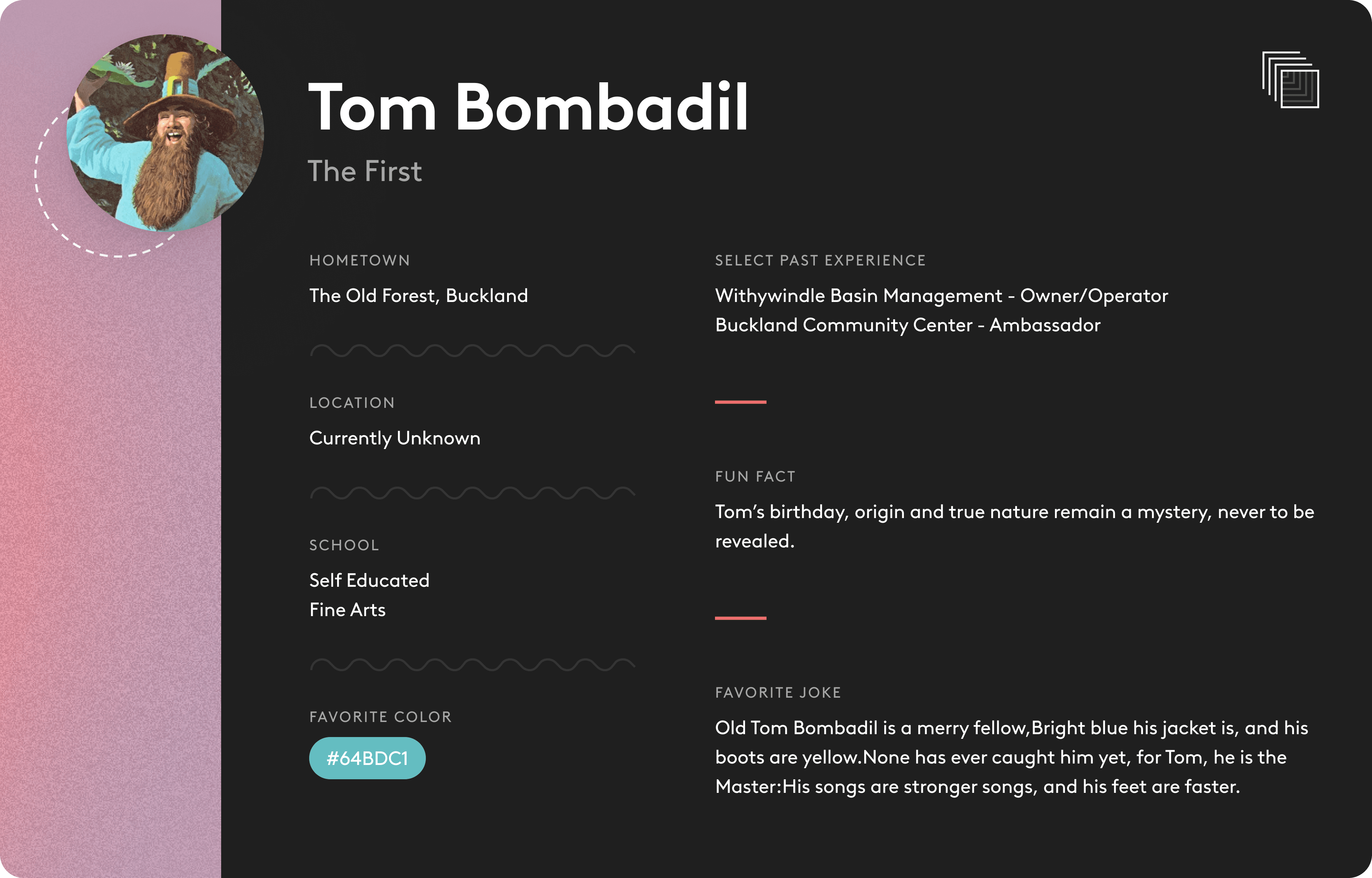 (For the sake of clarity, the options will be listed as if the name was Tom Bombadil)
